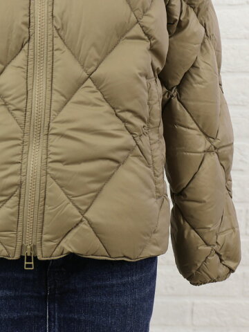 不要な時には小さくたたんで付属のポーチに収納出来るのも嬉しい! ノーカラーなのでタートルネックと合わせたり、ストールやマフラーも巻きやすいですね! コンパクトなシルエットは、ゆったりとしたコートのイン使いにもオススメです。